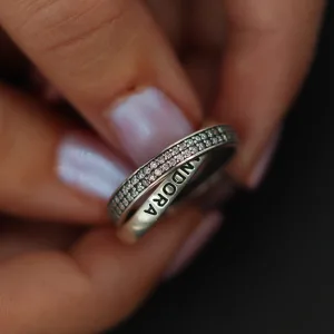 Efektan srebrni prsten sa dva spojena reda i cirko...