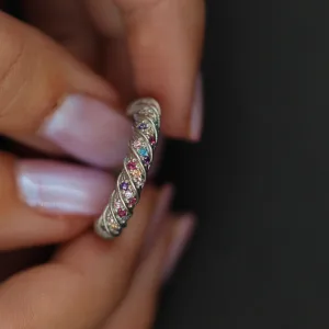 Isprepletani srebrni prsten sa cirkonima u boji ...