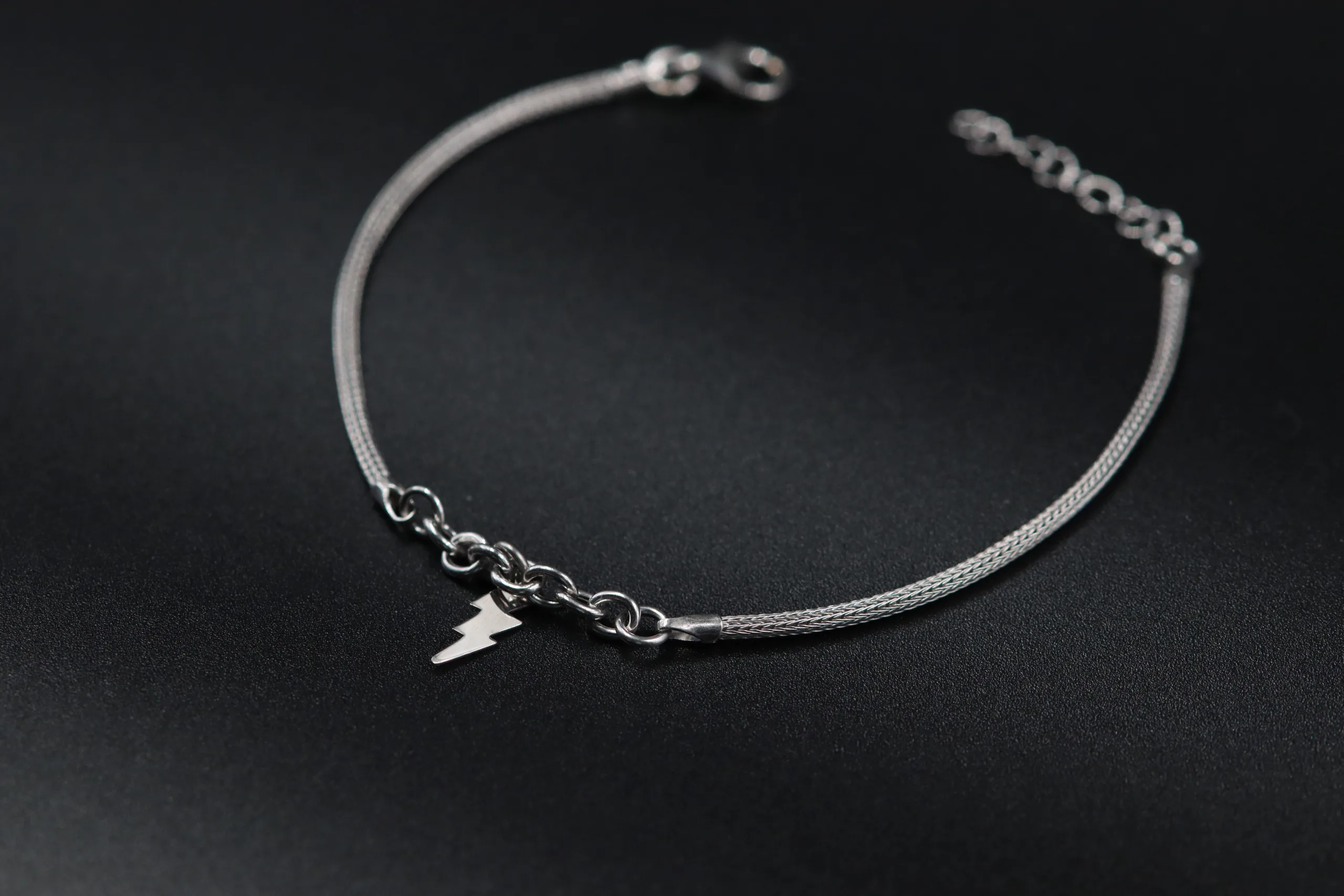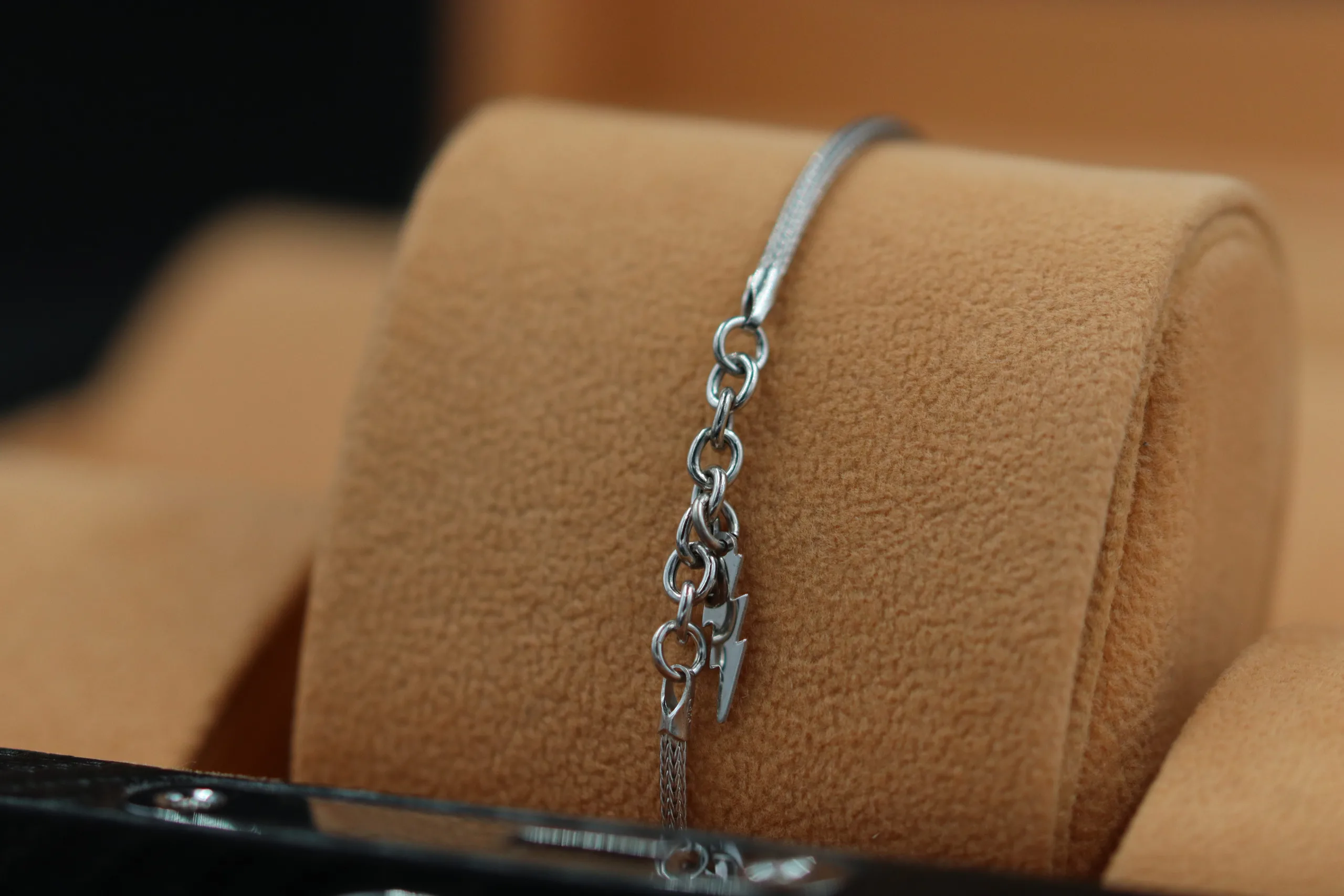 Ova srebrna narukvica u italijanskoj kalci sa privjeskom munje donosi moćan i upečatljiv izgled. Munja, simbol snage, brzine i strasti, daje narukvici dinamičan karakter, dok kalca oblik omogućava elegantan, ali čvrst dizajn. Izrađena od srebra 925 finoće, narukvica je izuzetno kvalitetna i udobna za nošenje. Idealna je za one koji vole savremeni nakit sa simbolikom i karakterom, kao i za ljubitelje urbanog stila.