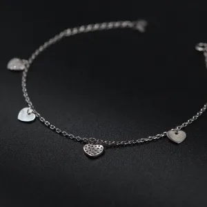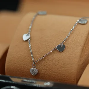 Ova srebrna narukvica sa pet srca i cirkonima unosi ljubav i sofisticiranost u vaš svakodnevni izgled. Pet srca, ukrašena svetlucavim cirkonima, stvara nežan i elegantan dizajn koji simbolizuje ljubav, povezanost i sreću. Izrađena od srebra 925 finoće, narukvica je udobna za nošenje i idealna za posebne prilike ili kao poklon voljenoj osobi. Njena briljantna kombinacija srebra i cirkona čini je savršenim komadom za ljubitelje elegantnog, ali emotivnog nakita.