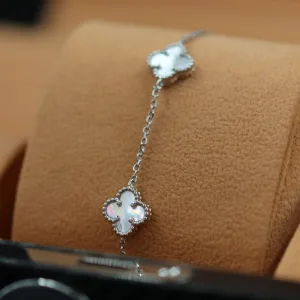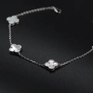 Ova srebrna narukvica sa tri bele deteline unosi simboliku sreće i pozitivnosti u svaki stil. Tri deteline, postavljene sa pažnjom, predstavljaju sreću, ljubav i blagostanje, dok jednostavan dizajn čini narukvicu pogodnom za svakodnevnu upotrebu. Izrađena od srebra 925 finoće, narukvica je udobna, lagana i dugotrajna. Idealna je kao poklon za voljenu osobu ili kao elegantan dodatak vašem svakodnevnom stilu.