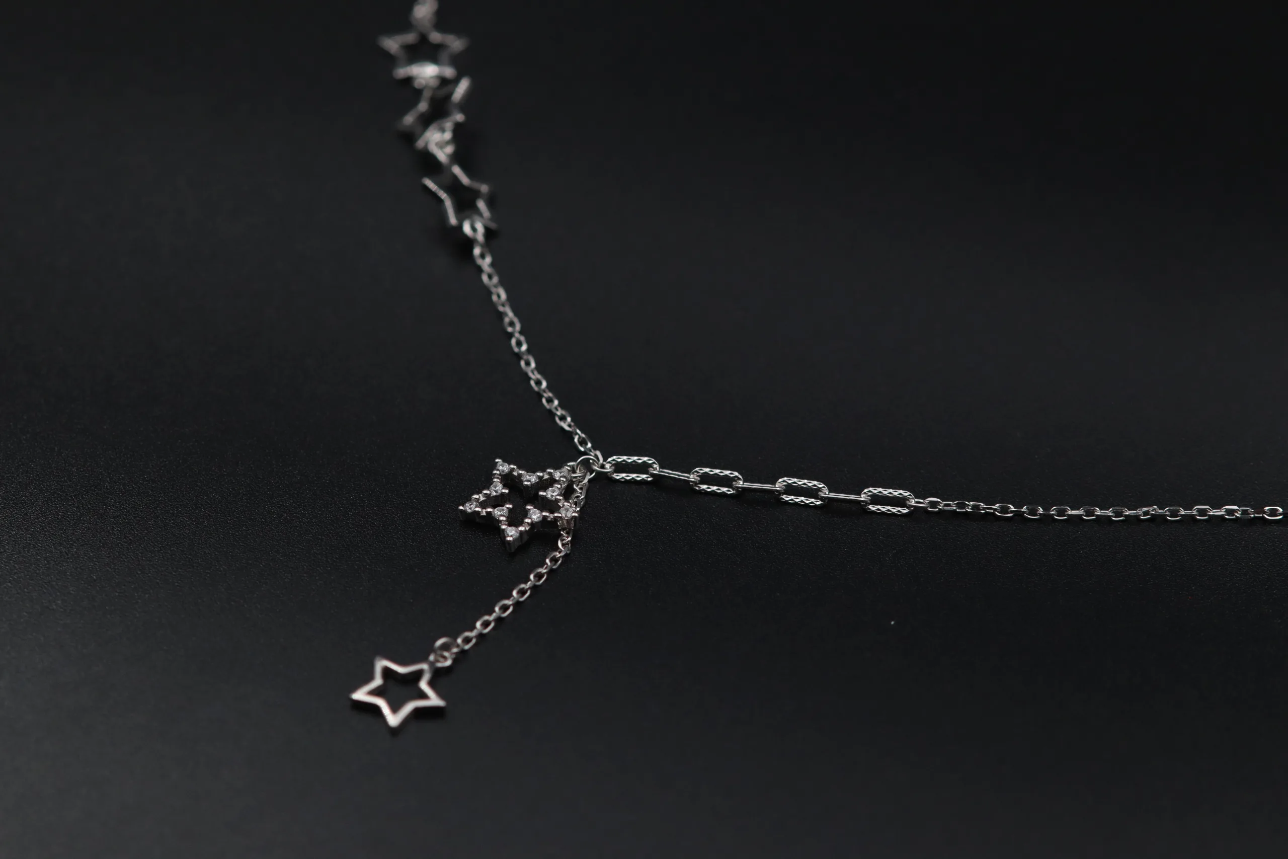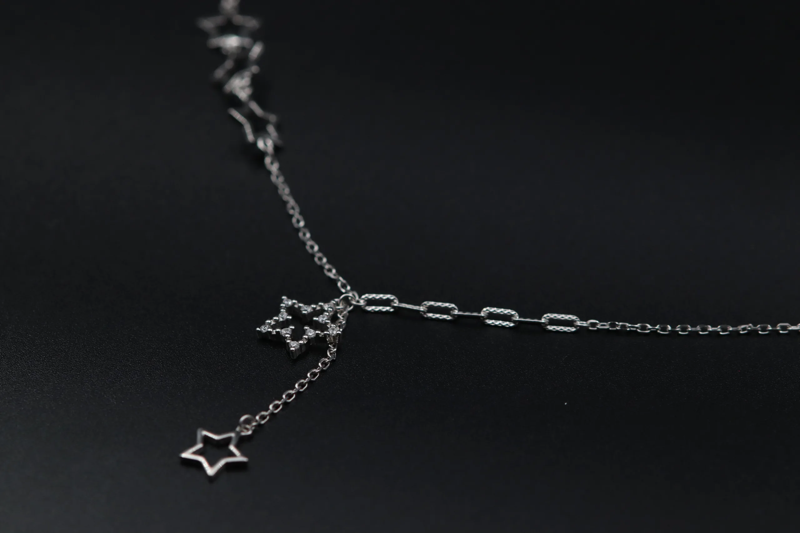 Ova srebrna ogrlica sa četiri zvezdice donosi prefinjeni simbol svetlosti i zaštite. Četiri zvezdice simbolizuju ravnotežu, vođstvo i inspiraciju, dok jednostavan dizajn ogrlice omogućava da bude savršen komad za ljubitelje simboličnog nakita. Izrađena od srebra 925 finoće, ogrlica je udobna za nošenje i idealna za ljubitelje elegancije i dubokog značenja. Savršen je poklon za voljenu osobu ili kao luksuzni detalj za svakodnevni stil.