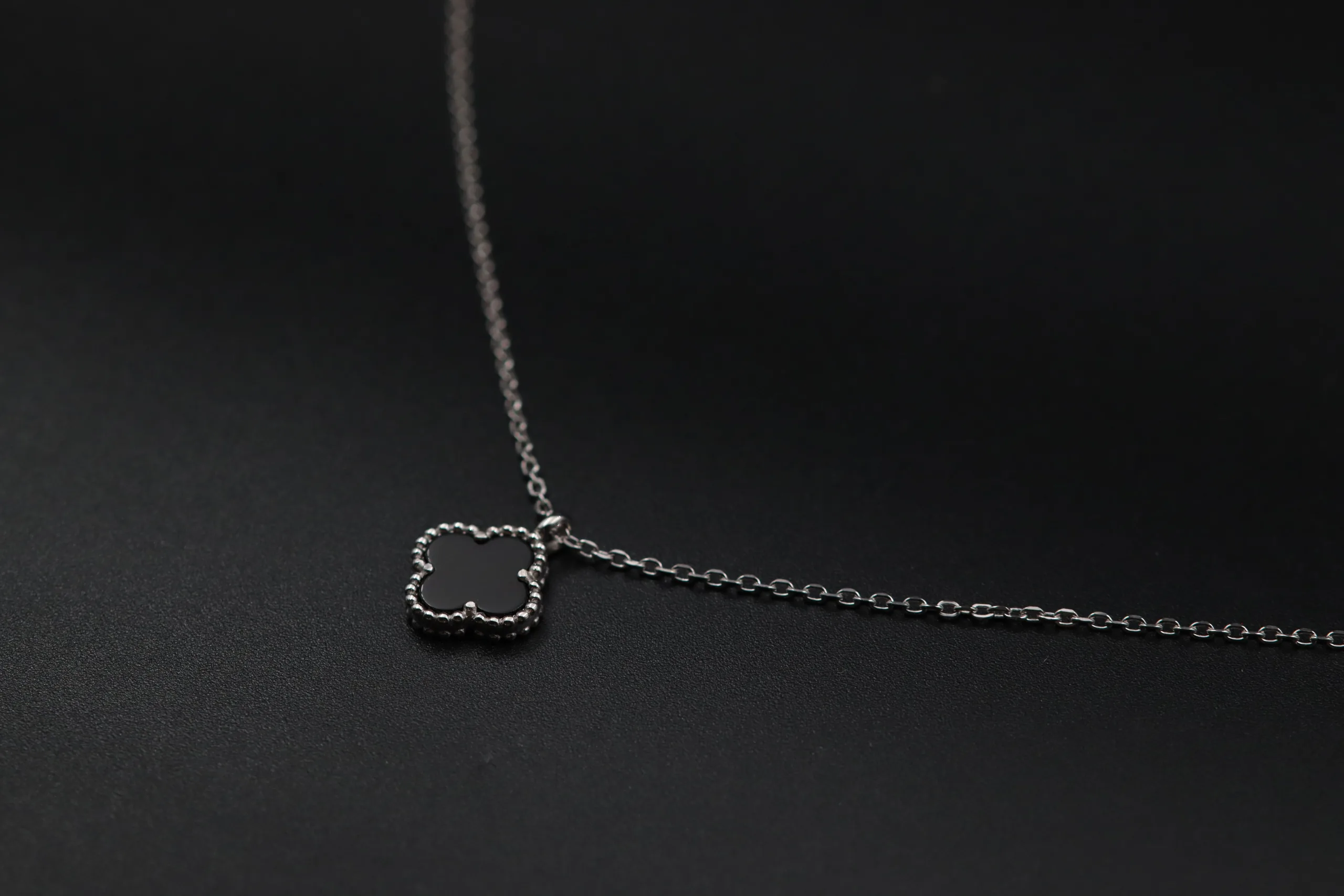Ova srebrna ogrlica sa crnom detelinom (srednja) unosi simboliku sreće i pozitivnih vibracija u jednostavnom, ali sofisticiranom dizajnu. Crna detelina, koja simbolizuje sreću, daje ovoj ogrlici posebnu simboliku, dok njen moderan dizajn čini je pogodnom za svakodnevne kombinacije ili kao poklon voljenoj osobi. Izrađena od srebra 925 finoće, ogrlica je udobna za nošenje i nosi duboko značenje, dodajući šarm svakom izgledu.