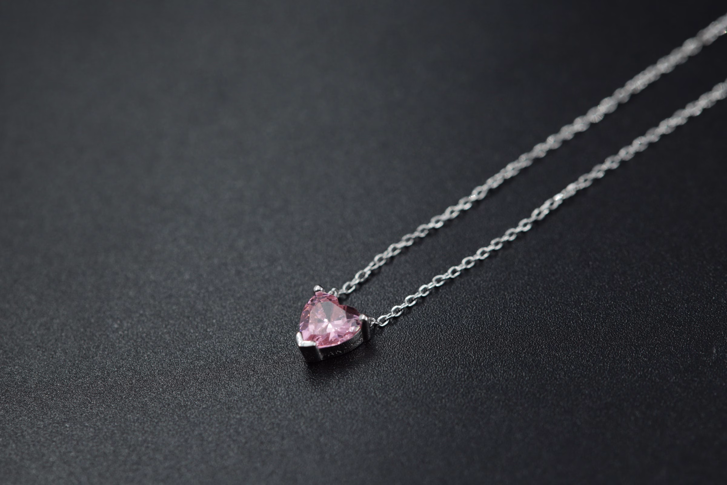 Ogrlica sa priveskom u obliku srca sa roze kristalom.