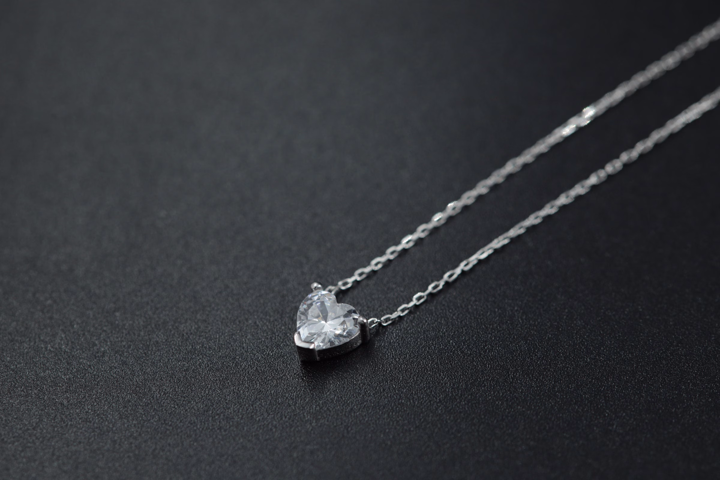 Srebrna ogrlica sa prozirnim kamenčićem u obliku srca.