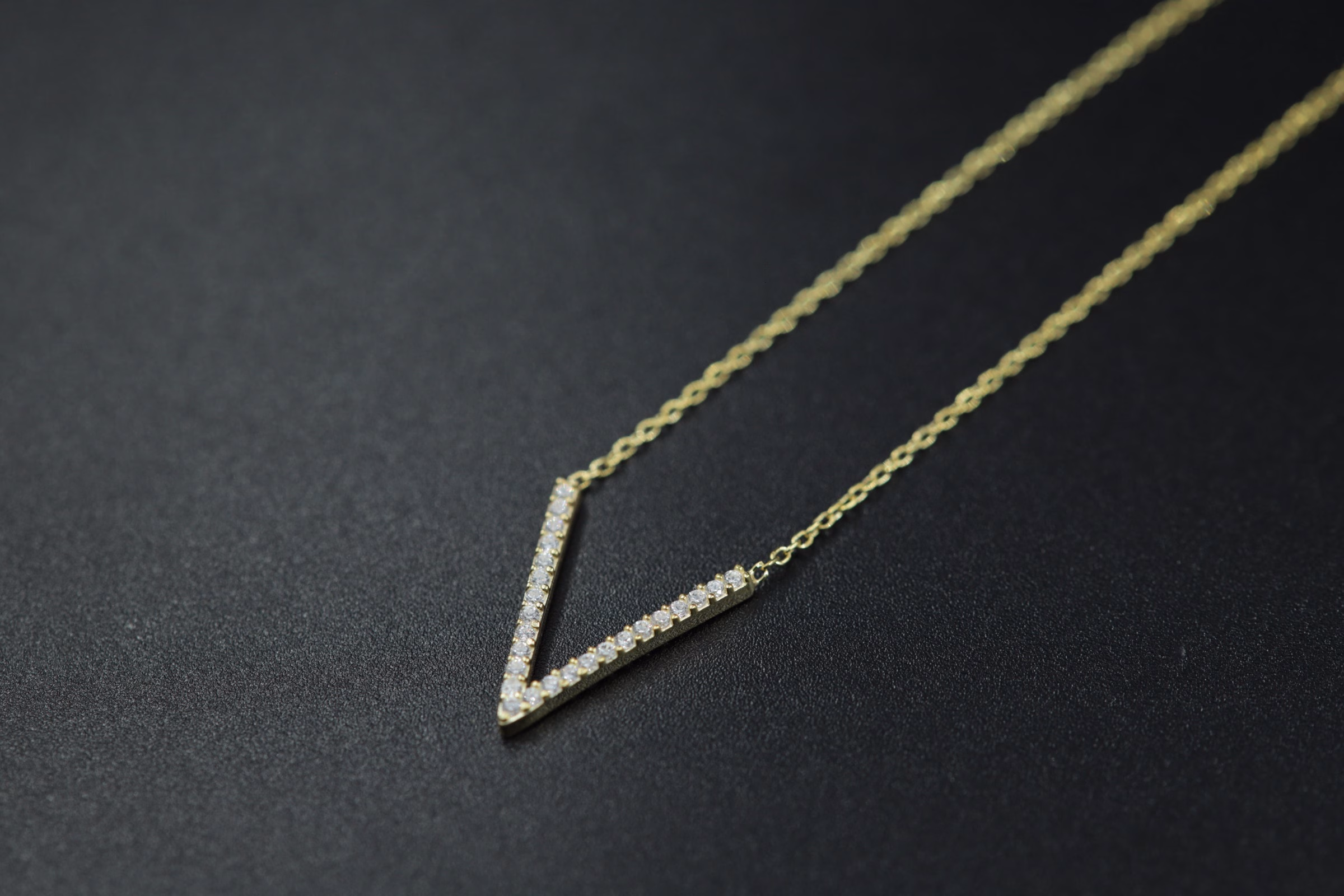 Ogrlica sa slovom „V“ ukrašena cirkonima.