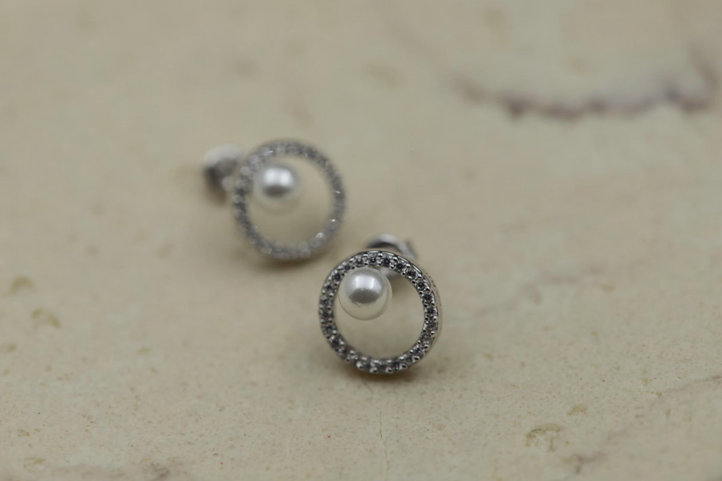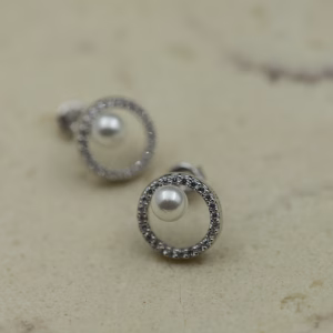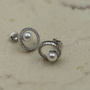 Ove sofisticirane srebrne minđuše u obliku kruga, ukrašene sitnim cirkonima i centralnim biserom, donose spoj klasične lepote i modernog dizajna. Savršeno prate svaki stil – od poslovne elegancije do večernjih kombinacija. Njihova suptilna blistavost i prefinjena izrada čine ih neizostavnim komadom u kolekciji svake dame.