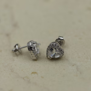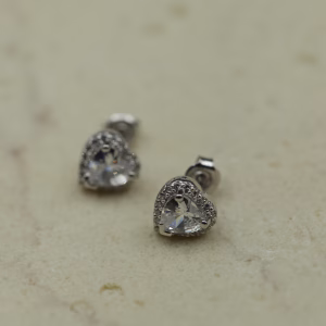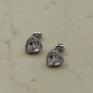 Ove prefinjene minđuše izrađene su od čistog srebra i krase ih beli kameni u obliku srca, nežno uokvireni nizom sitnih cirkona. Njihov sjaj donosi dozu sofisticiranosti i elegancije, dok oblik srca simbolizuje nežnost i iskrenost. Idealne su za poklon voljenoj osobi ili kao dodatak svečanim i svakodnevnim kombinacijama.
