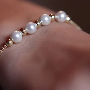 Ova srebrna narukvica sa pozlatom i biserima donosi savršen spoj luksuza i elegancije. Pozlata, koja daje prstenju zlatnu nijansu, čini ga još svetlucavijim, dok prirodni biseri dodaju dodatni šarm i sofisticiranost. Iako je izrađena od srebra, pozlata joj daje glamurozan izgled, koji je idealan za posebne prilike ili kao luksuzni dodatak svakodnevnim kombinacijama. Savršen poklon za voljenu osobu ili kao elegantan komad u vašoj kolekciji nakita.